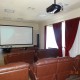 В кинозале используется системы звука 7.2. Установлена электроника JBL Synthesis с системой эквализации. Для видео используется перфорированный экран размером 153” с соотношением сторон 2.35:1.